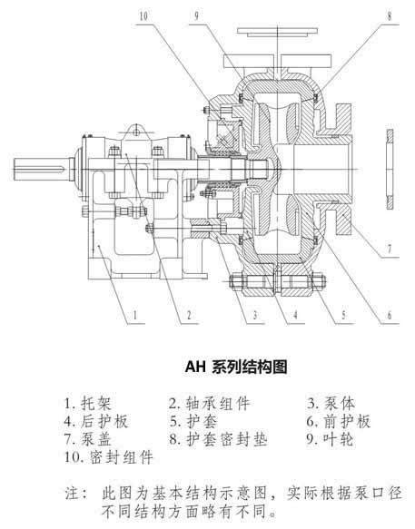 举例:4/3C AH 解释: 4 - 吸入口径; 3 - 吐出口径; C - 托架类型; AH - 产品系列